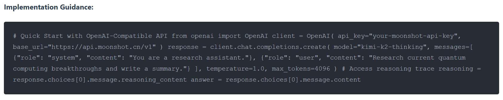 - OpenRouter API Documentation: Kimi K2 Thinking API Access